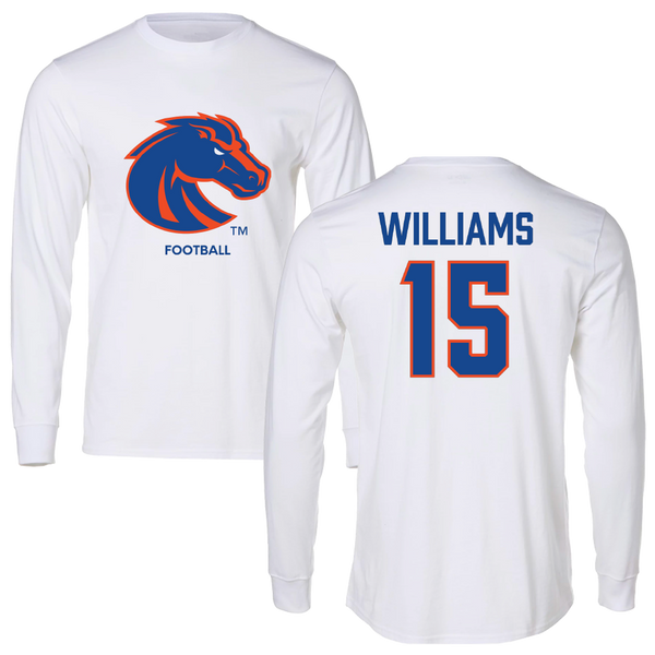 Boise State University Football White Long Sleeve - #15 Malakai Williams