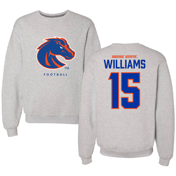 Boise State University Football Gray Crewneck - #15 Malakai Williams