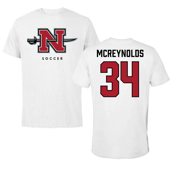 Nicholls State University Soccer White Classic Tee - #34 Mallory McReynolds