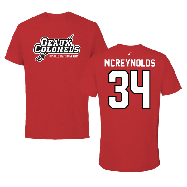 Nicholls State University Soccer Red Tee - #34 Mallory McReynolds
