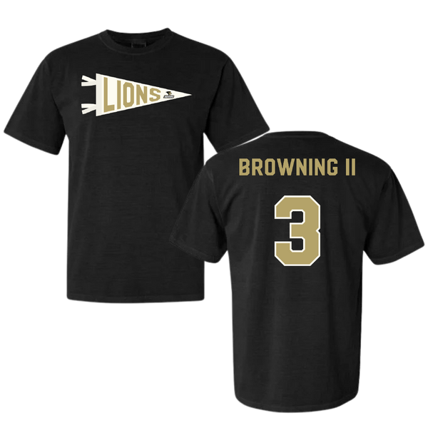 Lindenwood University Basketball Black Pennant Comfort Colors Tee - #3 Markeith Browning II