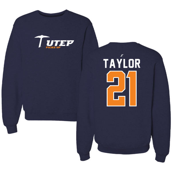 University of Texas at El Paso Football Navy General Crewneck - #21 Marquez Taylor
