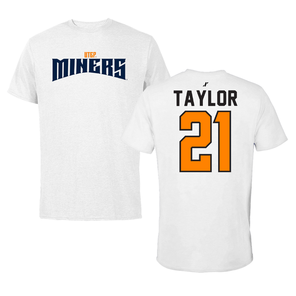 University of Texas at El Paso Football White Classic Tee - #21 Marquez Taylor