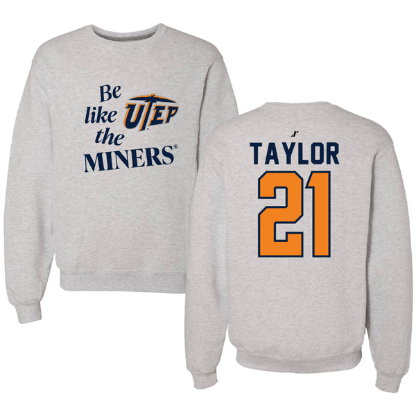 University of Texas at El Paso Football Light Gray Be Like Us Crewneck - #21 Marquez Taylor