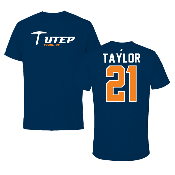 University of Texas at El Paso Football Navy Tee - #21 Marquez Taylor