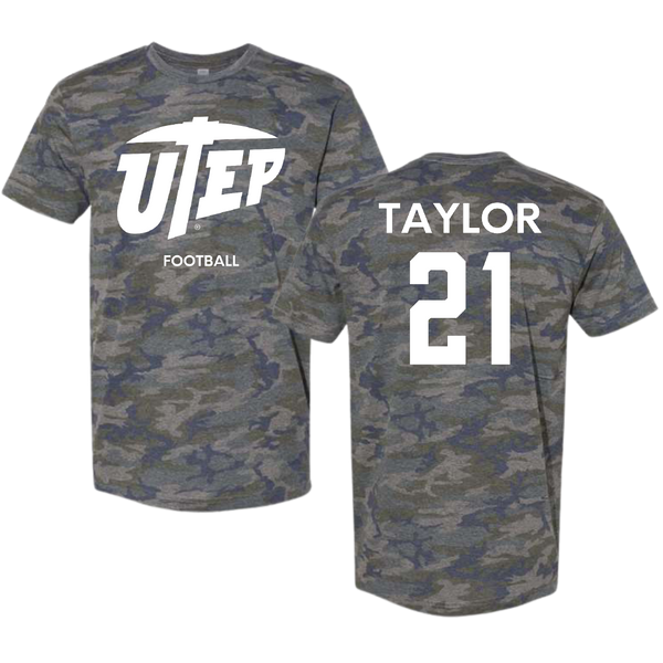 University of Texas at El Paso Football Vintage Camo Tee - #21 Marquez Taylor