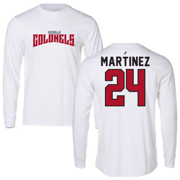 Nicholls State University Basketball (W) White Long Sleeve - #24 Marypaz Martinez
