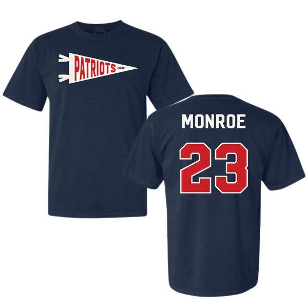 Dallas Baptist University Soccer Navy Pennant Comfort Colors Tee - #23 Mason Monroe