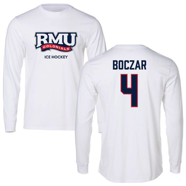 Robert Morris University Ice Hockey White Classic Long Sleeve - #4 Matt Boczar