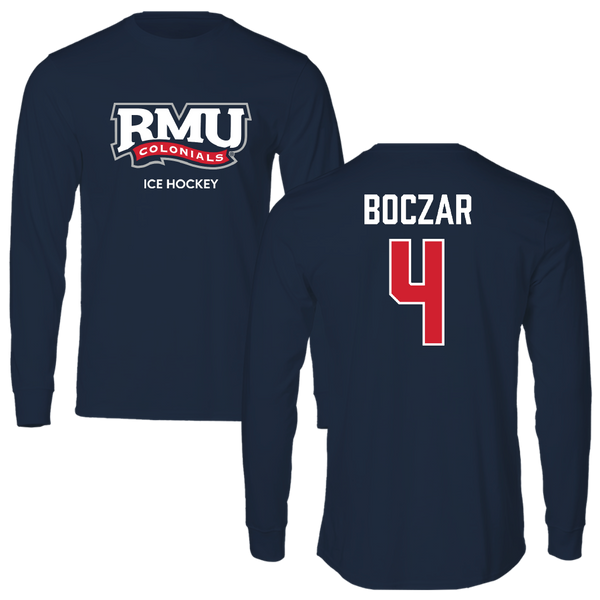 Robert Morris University Ice Hockey (M) Navy RMU Long Sleeve - #4 Matt Boczar