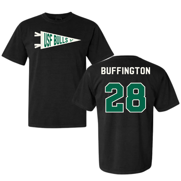 University of South Florida Baseball Black Pennant Comfort Colors Tee - #28 Matthew Buffington
