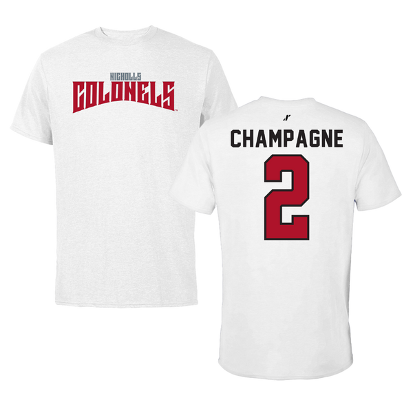 Nicholls State University Softball White Tee - #2 Mckenzie Champagne