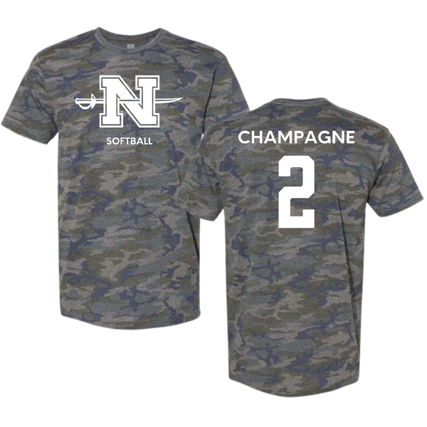 Nicholls State University Softball Vintage Camo Tee - #2 Mckenzie Champagne