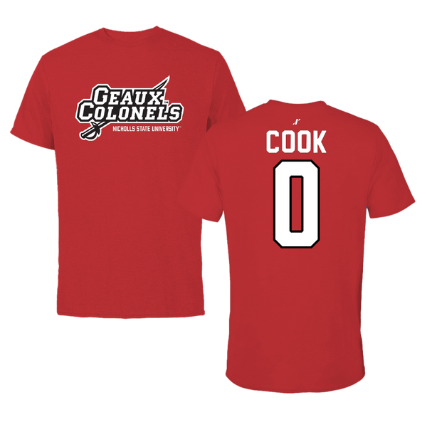 Nicholls State University Soccer Red Tee - #0 Megan Cook