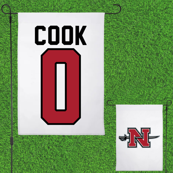 Nicholls State University Soccer White Garden Flag - #0 Megan Cook
