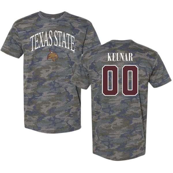 Texas State University Softball Vintage Camo Tee - #00 Megan Kelnar