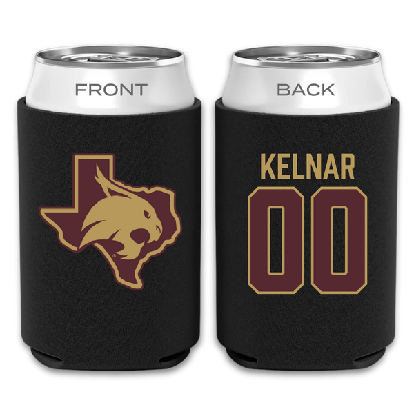Texas State University Softball Black Can Cooler - #00 Megan Kelnar