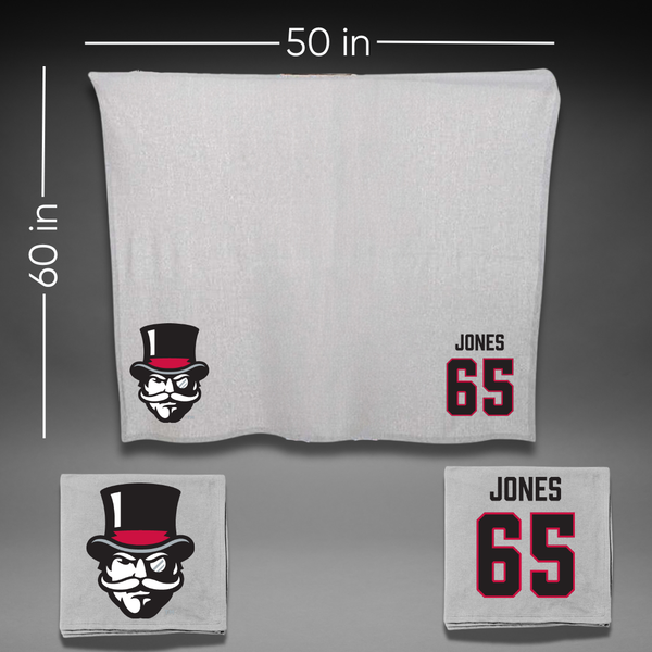 Austin Peay State University Football Gray Blanket - #65 Miada Jones