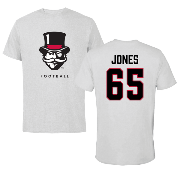 Austin Peay State University Football White Tee - #65 Miada Jones
