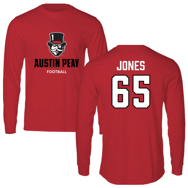 Austin Peay State University Football Red General Long Sleeve - #65 Miada Jones
