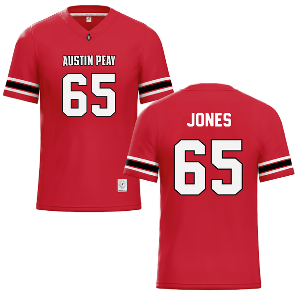 Austin Peay State University Red Football Jersey - #65 Miada Jones