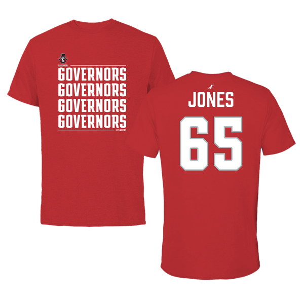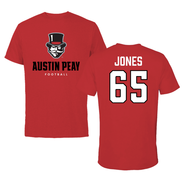 Austin Peay State University Football Red General Tee - #65 Miada Jones
