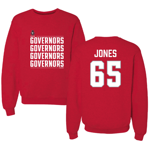Austin Peay State University Football Red General Crewneck - #65 Miada Jones