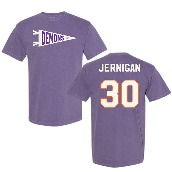 Northwestern State University Football Purple Pennant Comfort Colors Tee - #30 Micah Jernigan