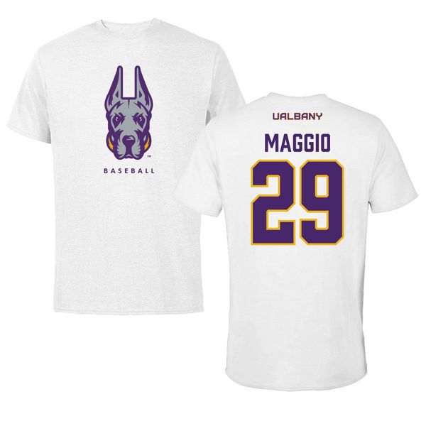 University at Albany Baseball White Mascot Tee - #29 Michael Maggio