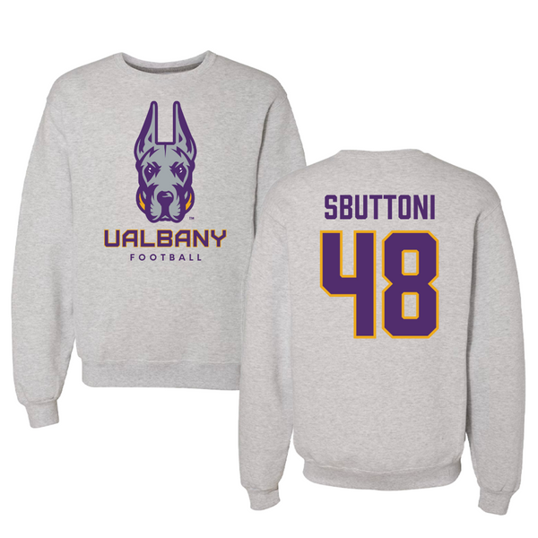 University at Albany Football Gray Crewneck - #48 Michael Sbuttoni