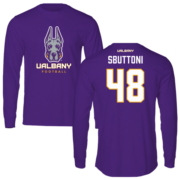 University at Albany Football Purple Mascot Long Sleeve - #48 Michael Sbuttoni