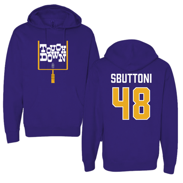 University at Albany Football Purple Touchdown Hoodie - #48 Michael Sbuttoni