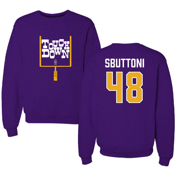 University at Albany Football Purple Touchdown Crewneck - #48 Michael Sbuttoni