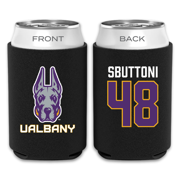 University at Albany Football Black Can Cooler - #48 Michael Sbuttoni