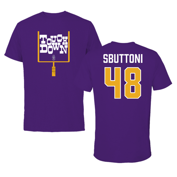 University at Albany Football Purple Touchdown Tee - #48 Michael Sbuttoni