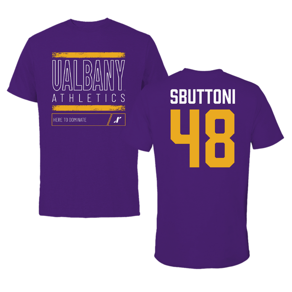 University at Albany Football Purple Dominate Tee - #48 Michael Sbuttoni