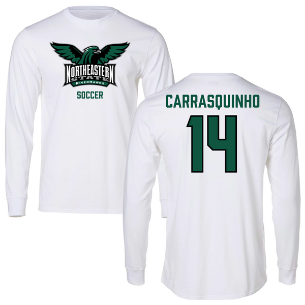 Northeastern State University Soccer White Long Sleeve - #14 Miguel Carrasquinho