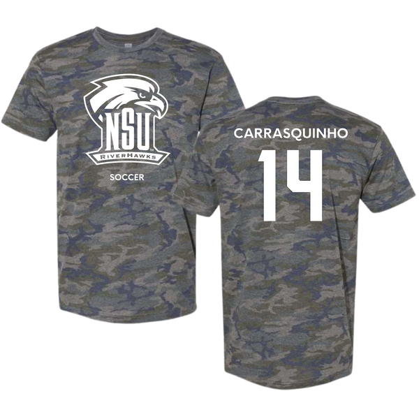 Northeastern State University Soccer (M) Vintage Camo Tee - #14 Miguel Carrasquinho
