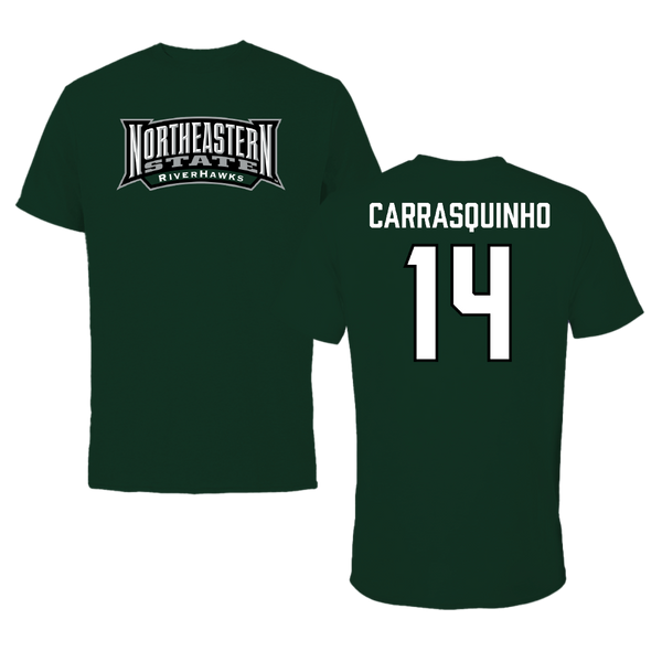 Northeastern State University Soccer Forest Green Block Tee - #14 Miguel Carrasquinho