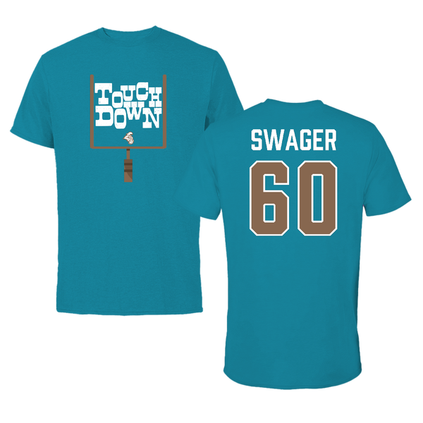 Coastal Carolina University Football Teal Touchdown Tee - #60 Mike Swager