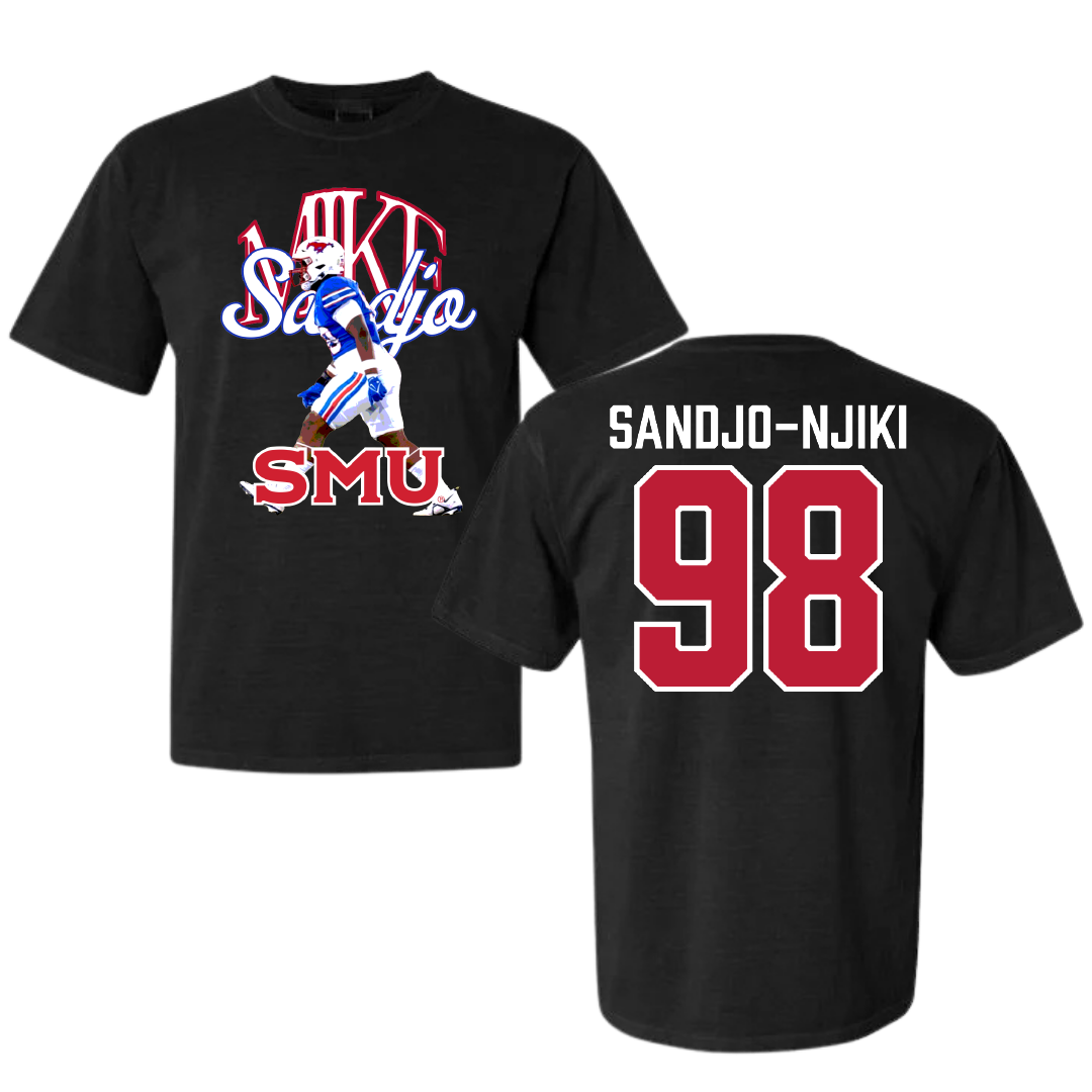 Southern Methodist University Football Black Mike Sandjo Comfort Colors Tee - #98 Mike Sandjo-Njiki