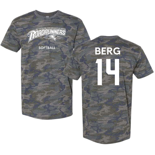 Metropolitan State University of Denver Softball Vintage Camo Tee - #14 Miki Berg