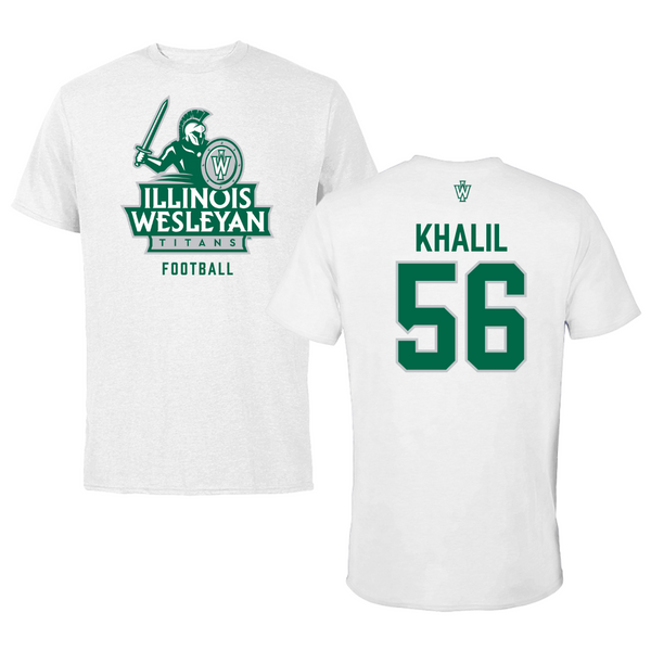 Illinois Wesleyan University Football White Tee - #56 Mo Khalil