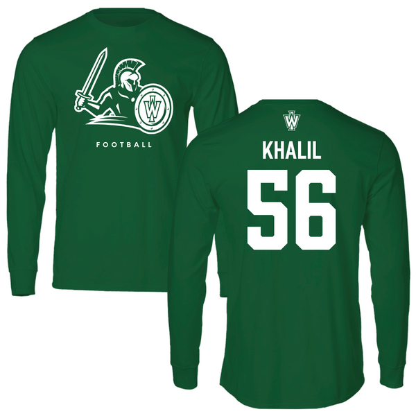 Illinois Wesleyan University Football Green General Long Sleeve - #56 Mo Khalil