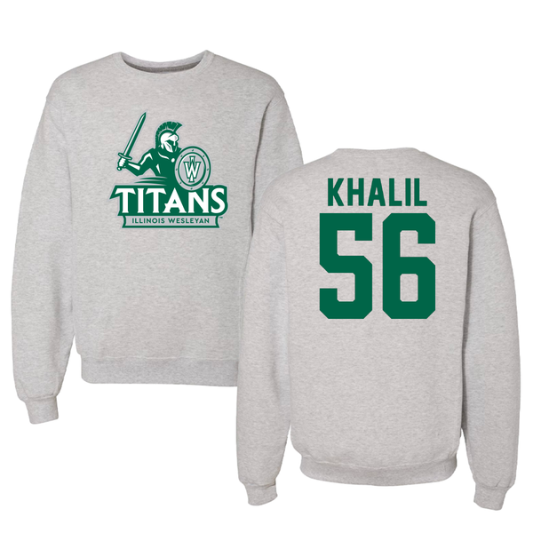 Illinois Wesleyan University Football Gray Titans Crewneck - #56 Mo Khalil