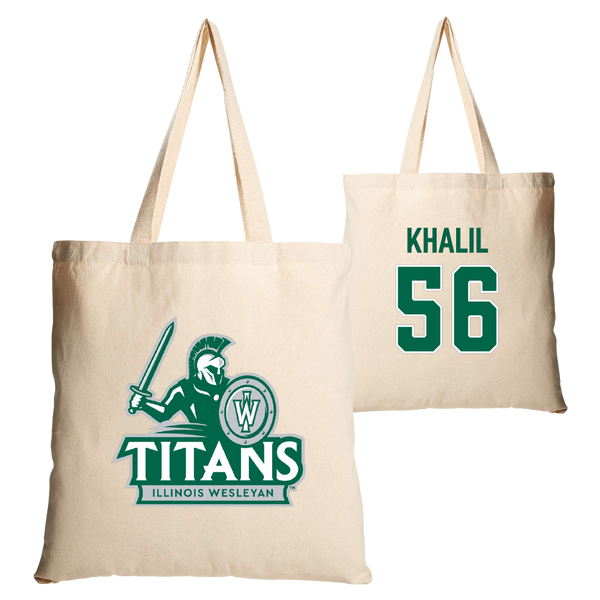 Illinois Wesleyan University Football Tan Canvas Tote Bag - #56 Mo Khalil
