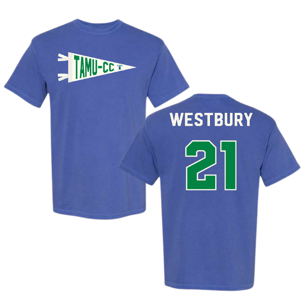 Texas A&M University-Corpus Christi Soccer Blue Pennant Comfort Colors Tee - #21 Morgan Westbury