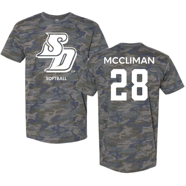 University of San Diego Softball Vintage Camo Tee - #28 Natalie McCliman