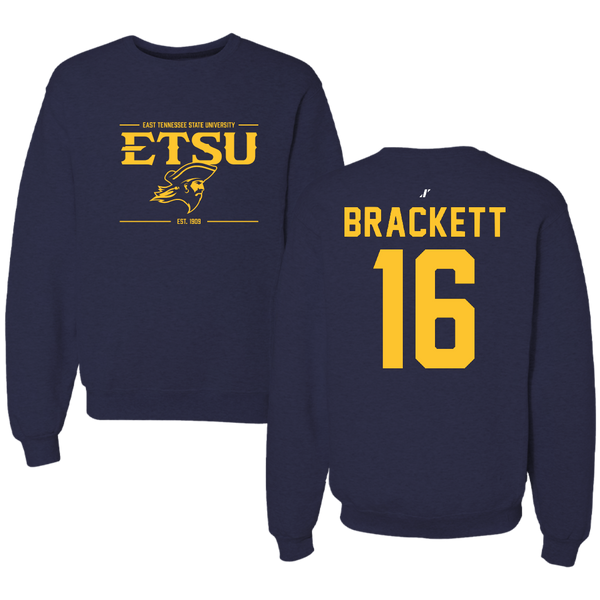 East Tennessee State University Football Navy General Crewneck - #16 Nate Brackett
