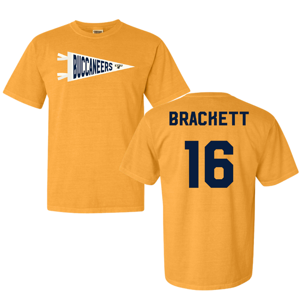 East Tennessee State University Football Gold Pennant Comfort Colors Tee - #16 Nate Brackett